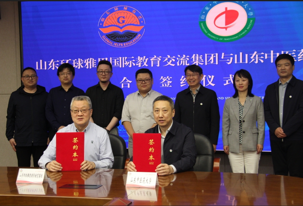 仪式现场,山东环球雅思国际教育集团与山东中医药大学正式签署战略合作框架协议,涵盖考试培训、师生交流、国际课程开发等多领域。