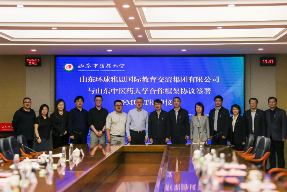 4月16日上午,山东环球雅思国际教育集团与山东中医药大学战略合作框架协议签署仪式在山东中医药大学行政楼328会议室隆重举行。马来西亚考试委员会(MEC)首席执行官阿德南·宾·胡辛、山东环球雅思国际教育集团董事长裴忠毅、山东中医药大学校长李可建等三方代表共同出席,标志着中马教育合作迈入新阶段。